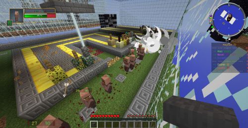 2.传送到地图后你会拿到一个铁砧和一个烟花,在游戏中你可以四处任意飞(建议OP们把地图场地封起来),拿着铁砧右击金块(默认是金块上才能建造塔)可以建造你的塔,建造好之后铁砧左击塔可以进行升级回收等操作