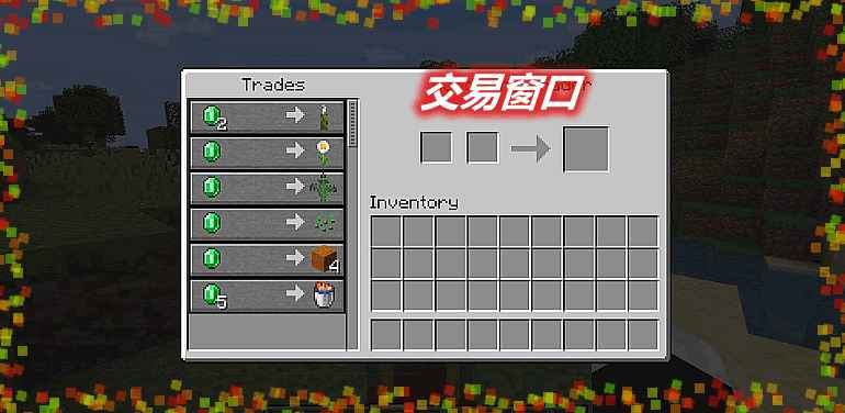 这个就是无限交易的界面了,刚开始你只有绿宝石,没有其他的物品,但是没关系,现在就可以用绿宝石去换取物品啦!